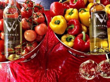 Bij Neerlans Wijnmakerij waren ze enthousiast over het ideevan een groentewijn. Toevallig kwam er gelijktijdig ook een vraag binnen vanuitKwekerij de Wieringermeer: of ze iets zagen in paprikawijn. "Tomatenwijn klonk nogwel logisch", vertelt vinoloog IlseVisscher. "Net als druivensap kun je met tomatensap wijn maken. Maar voorpaprikawijn moesten we wel even omschakelen. Hoe krijg je dat sap eruit, enwelke smaak geeft het?" Uiteindelijk zijn er twee wijnen ontwikkeld, enkel enalleen van de groenten. De paprikawijn heeft een kenmerkende paprikageur. Detomatenwijn is subtieler en daarin is de groente iets minder opvallend aanwezig. In samenwerking met het AOC Leeuwarden isdaar het concept ViniVega bij gemaakt.