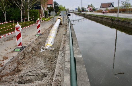 De nieuwe leiding komt te liggen in een dichtbevolkt en dichtbebouwd gebied en de aanleg trekt momenteel dan ook behoorlijk wat bekijks. De verwachting is dat deze zomer de eerste tuinders ermee aan de slag kunnen.
