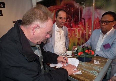 Kees Hoogervorst en Arno van Steekelenburg van Syngenta bij Paul Barendse en Ron Groeneveld van Screen4Seasons