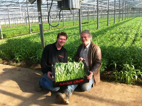 Leo en Cees Visser met een doos Ong-Choi