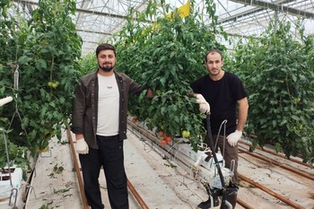 Eerste vloot oogstrobots tomaten rijdt in Limburgse kas