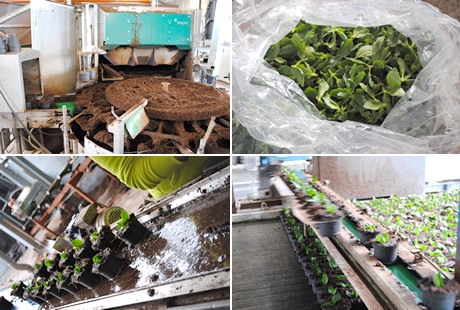 Bij Spectraplant worden de aangeleverde stekken van de Kalanchoë's met de hand gestoken in drie potmaten. Daarna gaan ze via een geheel geautomatiseerd systeem naar de eerste teeltfase.