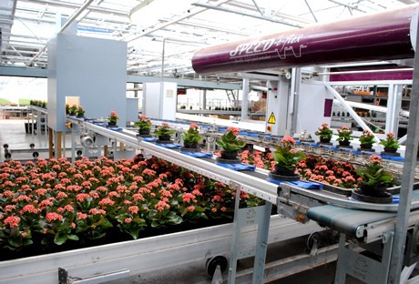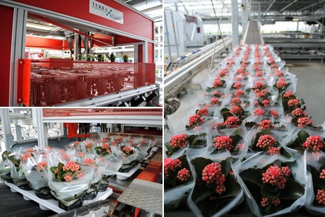 De eerste fase van de teelt vindt plaats boven de verpakkingsruimte. De Kalanchoë's groeien de eerste weken onder diffuus glas. Vervolgens gaan ze door naar de begane grond van de kwekerij.