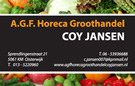 Het leveringsgebied van Coy Jansen AGF Horeca Groothandel bestaat uit de regio Tilburg en dat wil de ondernemer bij voorkeur zo houden. "Alleen de regio Tilburg (Tilburg, Oisterwijk, Hilvarenbeek, Gilze-Rijen, Kaatsheuvel) telt al zo'n 400 horecagelegenheden. Er is hier veel toerisme en Tilburg is een echte studentenstad. Als we die gelegenheden allemaal van groenten en fruit mogen voorzien, dan hebben we het druk zat! Bovendien, als je buiten de regio gaat leveren, heb je een hele andere kostprijs."