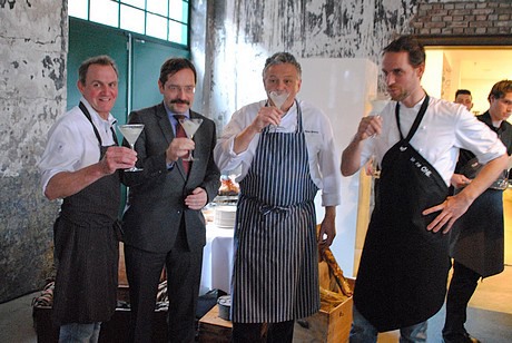 Theo Bovens, commissaris van de Koning in Limburg, met de drie chefkoks: Edwin Soumang, Rene Brienen en Paul Pollux