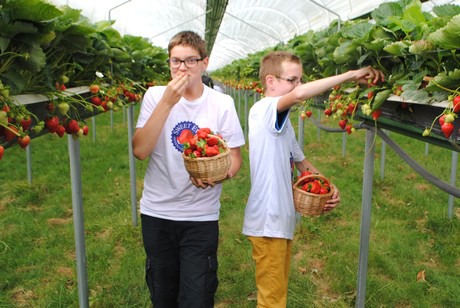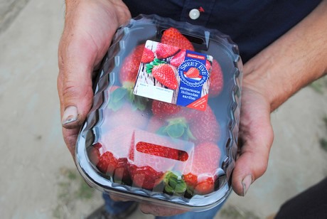 Met manden vol aardbeien komen ze tussen de teeltgoten vandaan, de kinderen die gisteren de eerste Sweet Eve-aardbeien van het seizoen mochten plukken. "Lekker", is het algemene oordeel en dat is precies waar het om gaat bij de nieuwe Sweet Eve-aardbei: een goede smaak. Het merk wordt in de markt gezet door VitalBerry. De organisatie zocht een manier om onderscheid te bieden in het aardbeienschap. "In de supermarkt liggen tien soorten tomaten en vijf soorten appels, maar slechts 1 aardbeisoort", vertelt Ghislaine van Berkom-Smits van VitalBerry. "Daar kunnen we met de Sweet Eve's verandering in brengen." De herkenbaarheid van het merk is daarbij van groot belang. "Ze zijn echt ontwikkeld op kwaliteit, op smaak. Daarop moeten consumenten ze opnieuw kunnen kopen." Vanaf maandag zijn de Sweet Eve's landelijk te koop bij Albert Heijn, in een verpakking van 400 gram. Het seizoen duurt, afhankelijk van het weer, tot half september. Het bedrijf verwacht rond een miljoen bakjes te kunnen doen in die periode. Wat daarna nog aan de plant hangt, is minder van smaak en het bedrijf wil onder het label juist enkel topkwaliteit leveren.