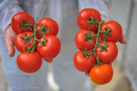 Carpenter is momenteel het vlaggenschip voor Gautier's trostomaten. Lens: "De linkertros is tien dagen oud, de rechtse is vers. Zoek de verschillen."