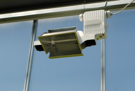 Als het systeem aan de zijkant nuttig blijkt, waarom dan niet boven het betonpad? Uit die gedachte volgde de tweede reflector. In plaats van de paden te belichten, wordt het licht terug het gewas in gekaatst. Dankzij de betere benutting van het licht kan er per 16 meter een armatuur minder opgehangen worden, ofwel 500 Watt per tralie van 8 meter. Het systeem is deze winter getest bij de tomatenkwekerij Agro Care in Middenmeer. Dat is zo goed bevallen, dat deze reflectoren nu de kas in Rilland worden toegepast. De belichting hangt er sinds 2001 en is aan vervanging toe, vertelt Kees van Veen van Agro Care. Van de hoeveelheid licht die niet op de planten valt, is hij bovendien best geschrokken. "Dat licht naar buiten valt en niet op je planten, is precies wat je niet wilt. Je jaagt toch 120 euro stroom door een armatuur heen. Per 16 meter is dat snel verdiend."