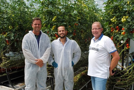 Kees van Veen (Agro Care) met Martin van der Dool (Hortilux Schréder) en Onno Boers (CombiCoop, de onderzoeks- en inkooporganisatie van Agro Care en CombiVliet)