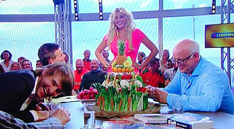 Tijdens VI Oranje in Scheveningen leverde Jan Brand een groententaart af aan de jarige Wilfred Genee