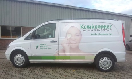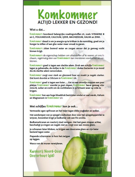 Het dessin op de bus past bij het doek dat sinds Kom in de Kas in het bedrijf hangt. Daarop staan allerlei feiten over komkommers. Wie wist er bijvoorbeeld dat je je badkamerkraan kunt reinigen met een schijfje komkommer? "Een makkelijke manier om iets te vertellen over je product en wat te promoten", vindt Albert. "Eigenlijk zouden best meer telers dit kunnen doen."