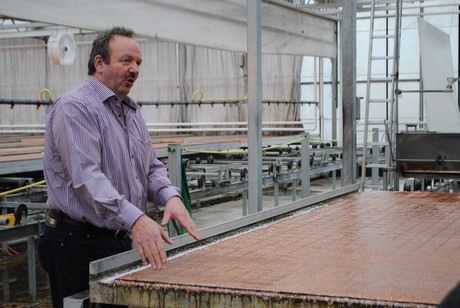 Elmar Gimperlein geeft uitleg aan een groep Nederlanders, die het bedrijf bezoeken tijdens een tuinbouw factfindingreis naar Zuid-Duitsland