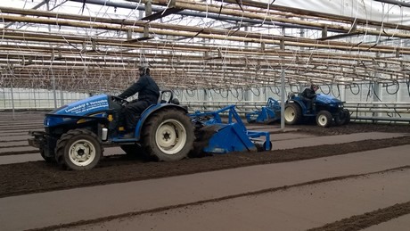 De kwekerij is in vier dagen tijd geheel voorzien van Herbie-korrels. Het middel is met nieuwe machines van Loonbedrijf Vercoulen uit Venlo in de grond gespit. Op verzoek zijn de machines uitgebreid met hydraulisch aangedreven gladde rollen. "Zo kunnen we de ontsmetting in de toplaag van onkruidzaden en ziektes perfectioneren", verduidelijkt Meints. "Eerder bleek de toplaag onder het folie uit te kunnen drogen. Dat verstoort de bacteriegroei in de toplaag." De rollen draaien iets sneller en daardoor blijft de toplaag beter vochtig. "Ook heeft lucht met zuurstof tijdens het resetten veel minder kans om in de grond te trekken", weet Meints uit een teelt van afgelopen zomer.