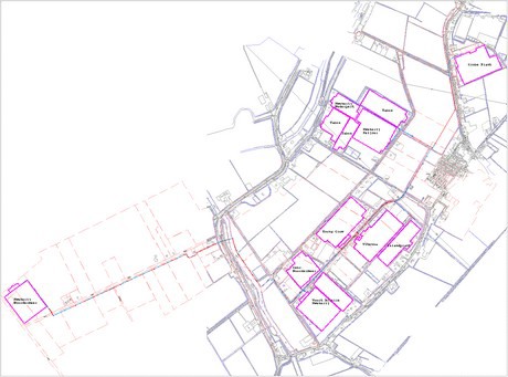 De aan te sluiten bedrijven. Er wordt een tracé van 7,2 km gerealiseerd (vergroting)