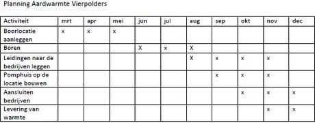 Dit voorjaar wordt de boorlocatie aangelegd en in juni wordt er begonnen met de boring. Dat gaat zo'n drie maanden duren. In het najaar wordt vervolgens het tracé gerealiseerd en eind 2015 moeten de eerste bedrijven aangesloten worden op het netwerk. En dan uitbreiden? Daar moet Grootscholten nog even niet aan denken. "We hebben al eens gekeken om eventueel woningen aan te sluiten, of andere branchevreemde instellingen die in de zomer warmte vragen. Dat zou goed zijn voor de spreiding van het verbruik. Maar het is al moeilijk zat om telers met grotendeels dezelfde belangen op één lijn te krijgen", lacht hij. "We willen bovendien eerst zorgen dat de basis klopt en dat optimaliseren. We gaan niets overhaasten."