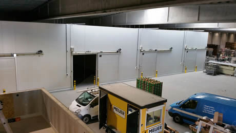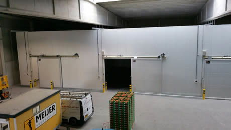 Onlangs heeft Hans van der Meijs BV een viertal grote koelcellen op de nieuwe locatie van Freight line geïnstalleerd voor het koelen van AGF-producten. De koelcellen hebben een totale oppervlakte van 38,5 x 14,8 x 7 meter (lengte, breedte, hoogte). In het pand is voor de 4 koelcellen een gebruikte, gereviseerde koelinstallatie geïnstalleerd.