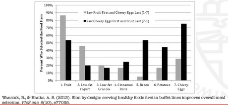 "Wat we niet moeten doen, is vers fruit bij de kassa zetten in plaats van ander 'aantrekkelijker' voedsel. Dat werkt niet. Door het veranderen van de omgeving verandert niet ineens ons brein", vertelt Harm. "Dat is het geval bij scholen die gezonde kantines hebben. Vaak zie je kinderen in de pauze dan toch snel naar de supermarkt gaan. Toch is het in specifieke gevallen wel mogelijk om mensen een gezonde keuze te laten maken. Bij een Amerikaanse saladebar werden groenten sneller gepakt als mensen er makkelijker bij konden. Door de gezonde producten op een bepaalde manier te plaatsen pakt men er eerder naar. Ook bij een lopend buffet bijvoorbeeld eten mensen meer gezonde producten als deze eerst komen. Maar dit zijn specifieke voorbeelden. Wat ook zou kunnen werken, is mensen eraan te herinneren dat ze gezond eten belangrijk vinden. Een ander voorbeeld is een verpakking met een speciaal plaatje of karakter. Dit maakt gezond eten aantrekkelijker voor kinderen."