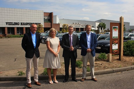 V.l.n.r.: Luc Bels (voorzitter Veiling Haspengouw), Marijke Vanderstukken (CEO Veiling Haspengouw), Marc Rosiers (CEO AIF) en Francis Kint (CEO Univeg).