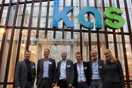 Van link naar rechts: Martijn Bekkers (beheerder kas HAS Hogeschool), Toine Hattink (opleidingsdirecteur HAS Hogeschool), Ben van den Brink (docent HAS Hogeschool), Mike Gitzels (student Tuinbouw en akkerbouw HAS Hogeschool) Peter Zwinkels (kassenbouwer Technokas) en Lieve Hurkens (student Toegepaste Biologie HAS Hogeschool).