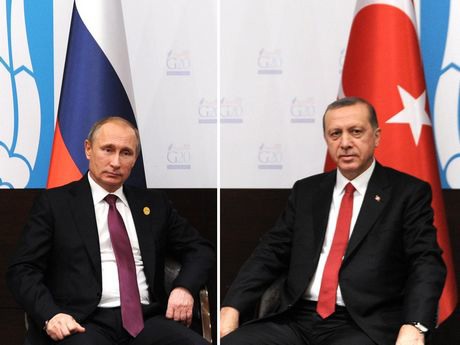 Tijdens de G20 top in Antalya (Turkije) op 15-16 november ontmoetten de Russische president Poetin (links) en de Turkse president Erdogan elkaar. bron: Kremlin