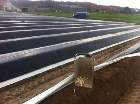 Tholen - Franc Goertz stak vorige week zo'n vijf kilo, en afgelopen zondag zo'n vier kilo voorlopers asperges op een halve hectare vollegrond. "Zonder verwarming," aldus de teler. Redelijk bizar als je ziet dat later op de timeline nog een foto verschijnt van een sneeuwschuiver in december. Hoewel Franc met kerst asperges uit eigen grond op het menu heeft staan, hoopt hij toch op strengere winters. "Dat is sowieso beter voor de opbrengst en de stengeldikte."