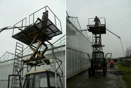 Inmiddels werken niet alleen de twee initiërende aardbeientelers ermee, maar hebben verschillende telers de machine aangeschaft. Ook gaan loonwerkers ermee aan de slag – net als Van der Heijden zelf. Gewapend met tractor, schaarlift en dekwasser gaat hij in september en februari samen met 2 andere telers bij verschillende bedrijven de kas reinigen. "We wassen zo'n 7.000m2 in 3,5 uur tijd. Maar de snelheid is niet het belangrijkste: het gaat erom dat de kas goed schoon is. De dekwasser is ontworpen om zelf je eigen kas mee te wassen wanneer hij vuil is, hetzij 2 of 3 maal per jaar. Maar alleen met deze dekwasser ben je er nog niet", vult Van der Heijde aan. "Een goede pomp is belangrijk en een slang, eventueel een haspel, werkdok en ruimte aan de voor of achterkant van de kas om met een tractor of heftruck langs te rijden."