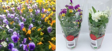 Momenteel biedt Vegobel diverse kleuren violen, daslook en lavendel. "De eetbare viooltjes gaan we jaarrond aanbieden. Daslook is slechts enkele weken beschikbaar, rond deze periode. Binnenkort komt de eetbare lavendel in bloei." Elke bloem geeft een specifieke smaak. "Lavendel smaken en geuren heerlijk, zoals we gewend zijn van lavendel. Daslook heeft een heel pittige looksmaak en viooltjes smaken zeer zacht en zijn vooral decoratief. Deze zijn verkrijgbaar in diverse schakeringen zoals geel, oranje, purper en verschillende kleuren in de bloem zelf."