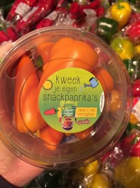 En hoe zit het met de kosten? De teeltverpakking, met substraat, zaadje en de kosten voor de extra verpakkingen - met daarop uitleg over de teelt - alleen al zijn behoorlijk. Is hier quitte mee te spelen? "Het is meer een marketingtool dan een verdienmodel", vertelt Franken. "Zeker als je kijkt naar de kosten van het ontwikkelen van een concept, moeten we er een aantal jaar mee aan de slag om het terug te verdienen. Daar gaat het ons niet om. We zien het als een verlengstuk van ons reguliere product en hebben daar marketingbudget voor beschikbaar ter ondersteuning van onze snackpaprika."