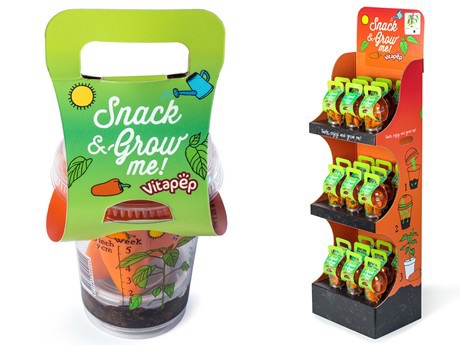 liggen de mini-kweeksets van Vitapep in de schappen bij Albert Heijn. Het Snack & Grow-Me! concept bestaat uit de shaker met snackpaprika's, zaad en substraat om zelf paprika's te telen. De shaker werkt dan als mini-kas. Albert Heijn kondigt de actie al flink aan