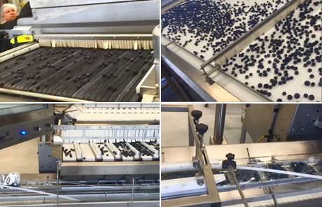 Rob Bondt (IQ Packing) bij de nieuwe blauwebessenlijn. Eerst wordt er gesorteerd op kleur, defecten en zachtheid....