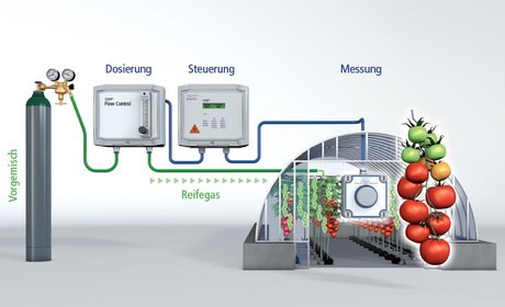 "De voordelen van ethyleen zijn bij de meeste tomatentelers wel bekend. Je hebt geen chemische middelen nodig en hebt hierdoor een residu-vrij product", vertelt Scheffler. "Met het systeem kun je veilig en gedoseerd ethyleen verspreiden." Naast tomaten is het ook mogelijk om paprika's met ethyleen af te rijpen. De techniek voor het gedoseerd inzetten van ethyleen komt uit de bananenrijperijen en aardappelbewaarcellen. Bij aardappelen en uien gaat het het kiemen juist tegen - maar bij andere groente komt het de rijping ten goede.