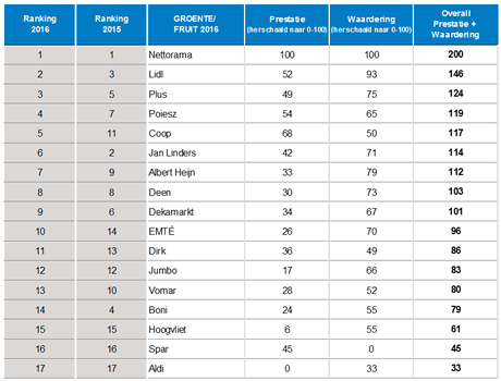 Positiebepaling voor GROENTE/FRUIT 2016: alle scores op een rij.
