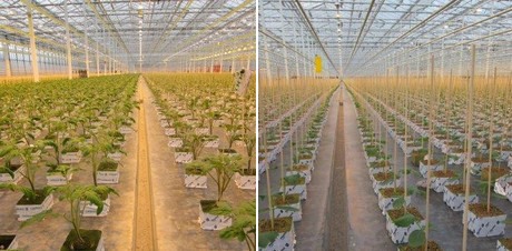 Zeeën vol komkommerplanten staan er momenteel in de kassen van Plantenkwekerij Van der Lugt. Het is kenmerkend voor deze tijd van het jaar. Sinds eind augustus is het bedrijf volop bezig met het uitleveren van warme groentenplanten. Eerst de belichte tomaten en vanaf november zijn ook de aubergines geleverd. "In de aubergines is het plantmodel gelijk ten opzichte van andere jaren", vertelt salesmanager Huub Hermus. "Ook de rassenkeuze is grotendeels gelijk gebleven. De paprika's komen daarna. Die zijn iets langer doorgelopen dit jaar."