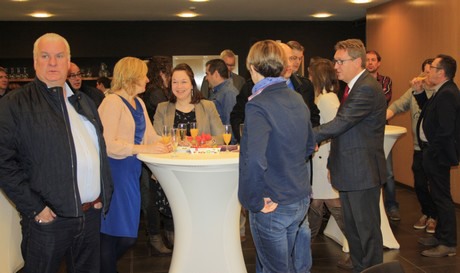 Tijd voor een hapje en drankje. Links Curd Vanmarcke van Vergro.