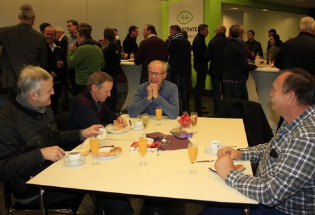 De tafel met bestuurders en Tom Van Delm, directeur van het Proefcentrum Hoogstraten.