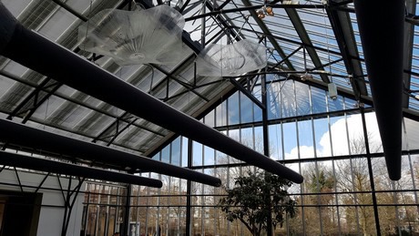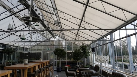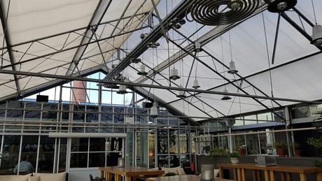 In restaurant De Kas is de originele, gerestaureerde kasconstructie in volle glorie te bewonderen. Fraai, maar pittig voor de scherminstallateurs want die constructie is natuurlijk niet uitgerust op moderne scherminstallaties. "Een leuke klus", vindt Jeroen. "Je hoeft dus niet altijd in een glastuinbouwgebied aan het werk te zijn om scherminstallaties te monteren. In hartje Amsterdam is het ook mogelijk."