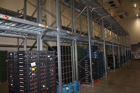 Het nieuwe Zachtfruit DC is pal achter de voormalige locatie op het IABC-terrein gebouwd. "Vastgoedontwikkelaar WDP heeft onze oude locatie opgekocht en wij huren dit nieuwe pand van hen terug. Er is nog meer ruimte op het terrein, dus ik hoop dat er nog meer zachtfruit gerelateerde bedrijven zich hier zullen vestigen", vertelt Gerard. Het nieuwe DC heeft een totale oppervlakte van 13.400 m2, waarvan 8.200 m2 geconditioneerd. Het pand telt 23 docks, 9 koelcellen met stellingen van drie hoog, waardoor iedere pallet uniek te benaderen is. Eén cel is ingericht om extra snel terug te koelen.