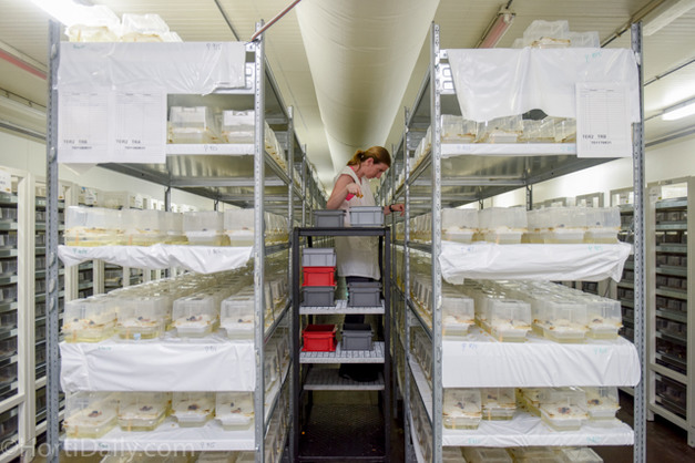 De hommels worden in grote klimaatkamers opgeslagen om natuurlijke seizoenen na te bootsen. Hierdoor kan Biobest jaarrond hommels produceren.