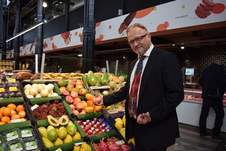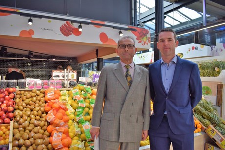 Amoury Janssen (r), districtsmanager bij Delhaize, feliciteerde Group A. De Witte met het resultaat: "Het is gelukt om de architectonische schoonheid en geschiedenis van het gebouw te bewaren. Met een winkeloppervlakte van 1800m2 en een unieke toog van 660 meter en 3 slagers onder 1 dak is het een uniek geheel. We zijn er fier op dat Group De Witte nu deel uitmaakt van onze groep van 500 zelfstandige uitbaters van Delhaize winkels."Criée, wat overdekte markt betekent, is al jaren een begrip in Antwerpen. "We trekken mensen van Oostende tot Duitsland", vertelt Stijn Vermoere van Group A. De Witte. "Op dit moment hebben we dagelijks 2000 betalende bezoekers. We hopen dat dat nu verder uitgroeit." Hoewel er het complete supermarktaanbod te vinden is, ligt de nadruk van Criée op vers en beleving. De vleestoog van 660 meter is uniek. Daarnaast is ruimte voor versgebakken brood en maken koks verse sushi klaar. De groenten- en fruitafdeling is corebusiness van Group A. de Witte en de Criée is voor hen het vlaggenschip. "Zoals wij het hier presenteren, zo zien wij het ook graag in ander AD Delhaize filialen", vertelt Freddy Derave, verkoopdirecteur bij Group A. De Witte. "Wij hebben de know-how om zo'n mooie afdeling te maken en kunnen andere filialen helpen om dit ook te realiseren. Ook trainen wij medewerkers op het gebied van AGF."