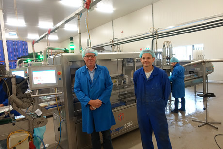 Ger de Boer (links) en Peter Plak (rechts) bij de nieuwe verpakkingslijn