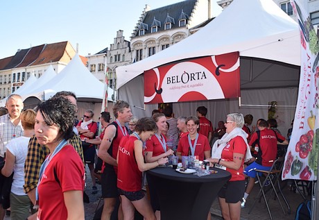 BelOrta is geen officiƫle sponsor van de loopwedstrijd, maar net zoals veel andere bedrijven uit de regio Mechelen heeft de veiling een standje waar de lopers achteraf kunnen napraten met een hapje en drankje.
