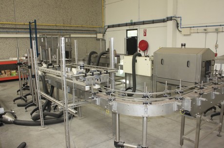 Via een lopende band gaan de producten naar het drooggedeelte.
