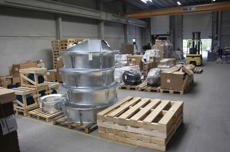 In Moeskroen worden de ventilatoren in verschillende maten in elkaar gezet. Niet alle onderdelen worden ter plaatse in de fabriek gemaakt. "Wij maken ventilatoren van 300 millimeter tot 2 meter groot", zegt de directeur. "Soms ontwerpen wij een ventilator die volledig bij een subcontractor gemaakt wordt maar of wij het nu zelf maken of niet: wij laten de machine altijd in onze fabriek proefdraaien, om er zeker van te zijn dat het werkt naar behoren."