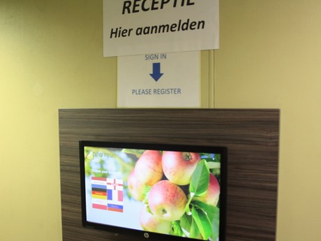 Geen medewerker, maar de e-receptie helpt klanten bij het registreren.