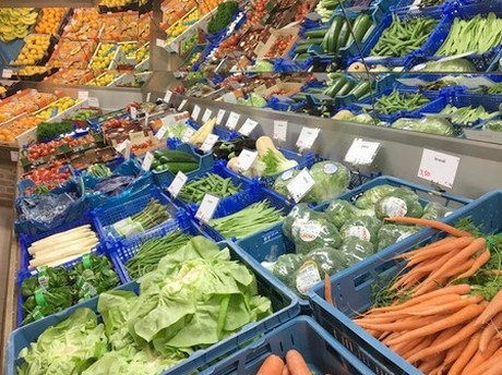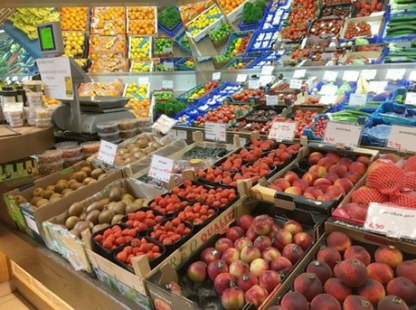 Een gedeelte van de producten die Stefaan verkoopt. Volgens hem doen vooral de avocado's, mango's en pastinaken het goed. Producten die volgens de eigenaar dankzij televisiekoks en bladen aan populariteit winnen. Hij vindt het soms jammer dat mensen niet zelf een keuze maken, maar zich laten sturen.