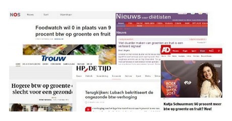 De BTW-discussie blijft de maatschappelijke gemoederen bezighouden. Het kwam ook ter sprake in de eerste aflevering van het discussieprogramma de Stelling van Nederland. Jort Kelder die ook graag zijn mening geeft, presenteert het programma. Hij is voor voor een vrijstelling van groenten- en fruit, net als BN-ers Katja Schuurman en Giel Belen. De regering lijkt echter niet bereid de handschoen op te pakken. Alexander Pechtold vindt het te ingewikkeld. "Hoe moet je dan omgaan met de groenten op bijvoorbeeld een pizza quattro stagioni?", is zijn argument. Foodwatch vindt dat echter onzin: "Veel landen laten al zien dat differentiatie in btw-tarieven kan en werkt."