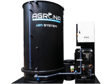 Nu heeft Agrona speciaal voor de productie van bacteriën het ABR-systeem ontwikkeld: een kraamkamer voor aerobe bacteriën. De bioreactor bestaat uit een tank, gevuld met een membraan en met water en een aangekoppelde compressor. Bacteriën hebben dankzij het membraan in de tank een groot hechtingsoppervlakte. De aangekoppelde compressor drijft de beluchting van het water aan. "In combinatie met de voedingsstoffen ontstaan de omstandigheden voor een optimale vermenigvuldiging", laat Nadir zien. Door het trillen van het membraan laten de bacteriën gecontroleerd los en komen zo, samen met het beluchte water, vrij in het irrigatiesysteem.