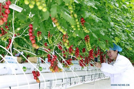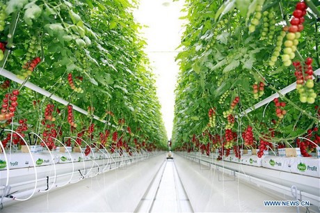 Tomaten in een hypermoderne kas in Pingliang City in de provincie Gansu, 9 november 2017. (Xinhua/Yang Xin)