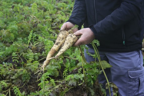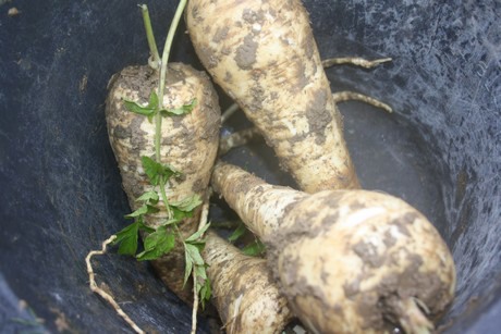 De pastinaken recht uit de grond.
