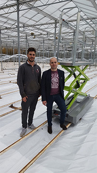Links: Matthias met dealer CMW in Engeland op road-trip met de Masterlift, waarna een Britse tomatenteler besloot over te gaan op aanschaf.
